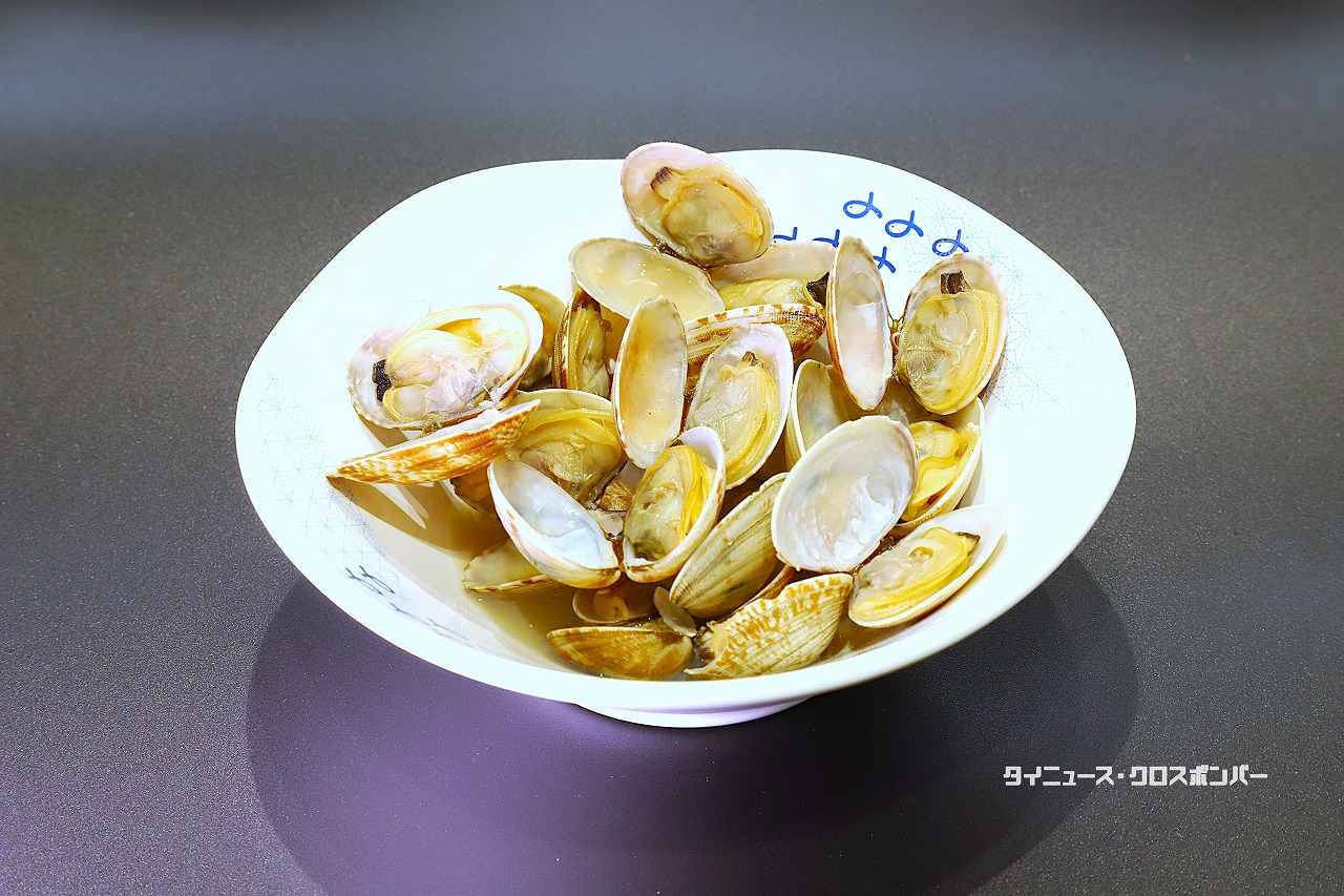 出汁の固まり、あさりの酒蒸し。これがたったの80バーツ。
