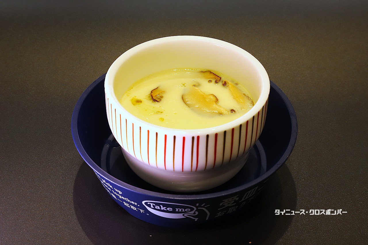 「はま寿司」の茶碗蒸しは、中にかまぼこ、ぎんなん、鶏肉、しいたけ、たけのこが入ってた。