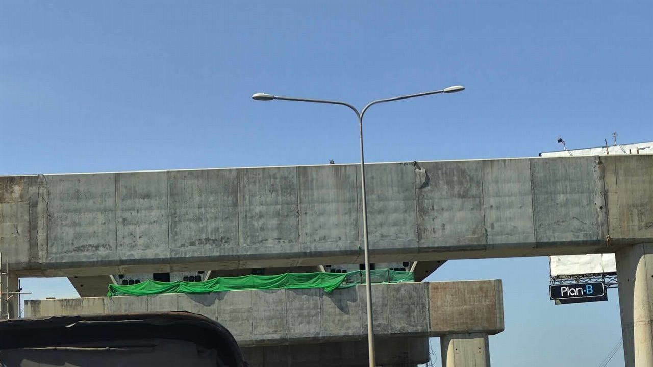 ラマ9世橋を下りて最初の梁部分でひび割れが生じ、コンクリート片が通行中の車に落下したというのだ。