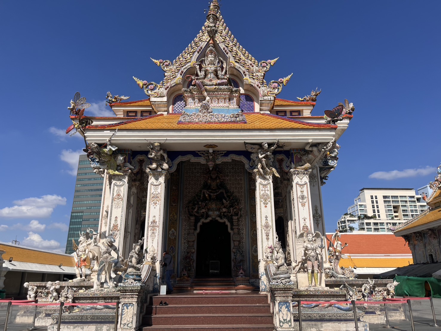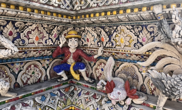 個性的な彫刻で有名な「ワット・パリワート」をナインちゃんと一緒に参拝。