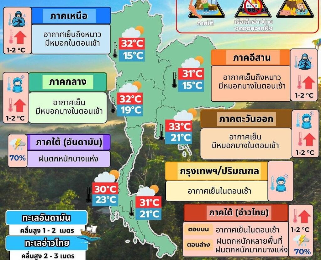 タイ北部では気温が1〜2℃ほど上昇し、朝には霧が発生。