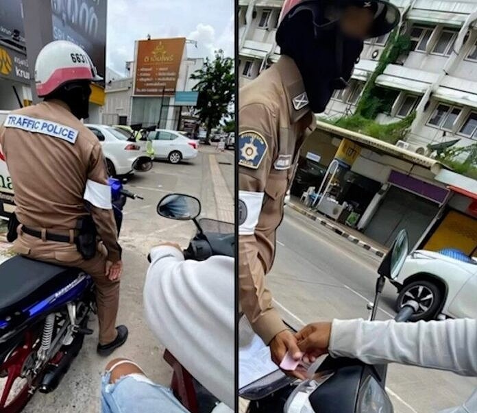 11月24日、コンケン県の警察署長は、交通警察官が違反者から現金500バーツを受け取る写真がSNSに拡散され、警察への批判が高まっている件について説明した。