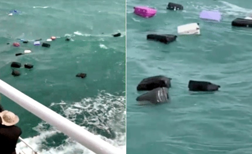 オーストラリア人旅行者が撮影した動画には、複数のスーツケースが荒れたタイランド湾の海面を漂っている様子が映っていた。