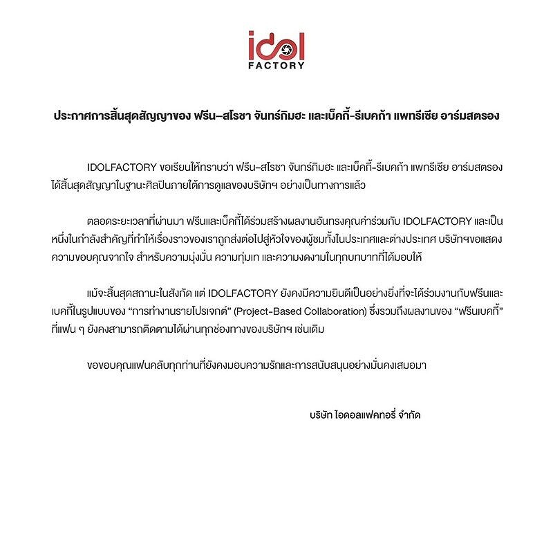 IDOLFACTORY の代表 チェン氏(เชน คเชนทร์ สดโพธิ์) には契約終了が正式に通知されており、事務所側の弁護士とも10月に一度話し合いが行われたという。