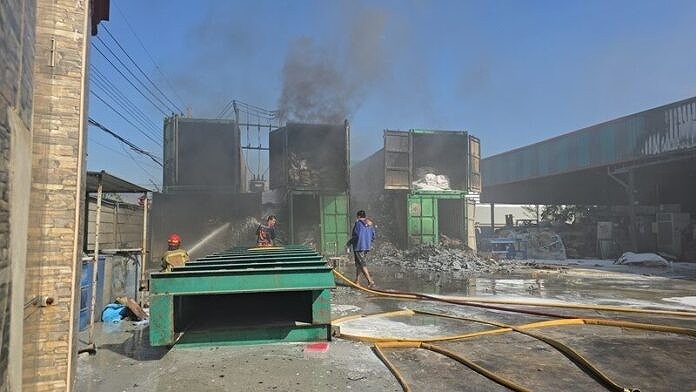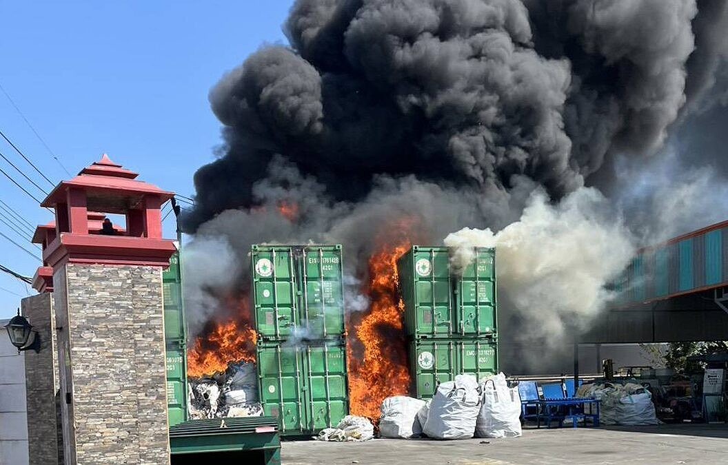 タイ・サムットサコーンで化学物質入りコンテナ6台全焼、消火に3時間以上。