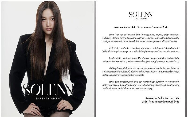 12月1日、フリーンの現所属事務所・Cholen Entertainment(チョーレン・エンターテインメント)が声明を発表した。