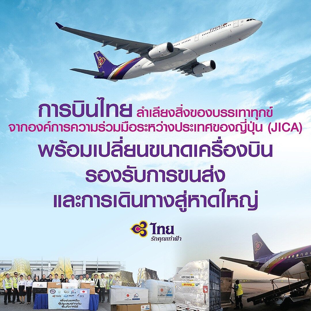 またタイ国際航空は、救援物資をより迅速に被災者へ届けるため、ハートヤイ路線の一部便で使用する機材をより大型に変更し、輸送能力を強化した。