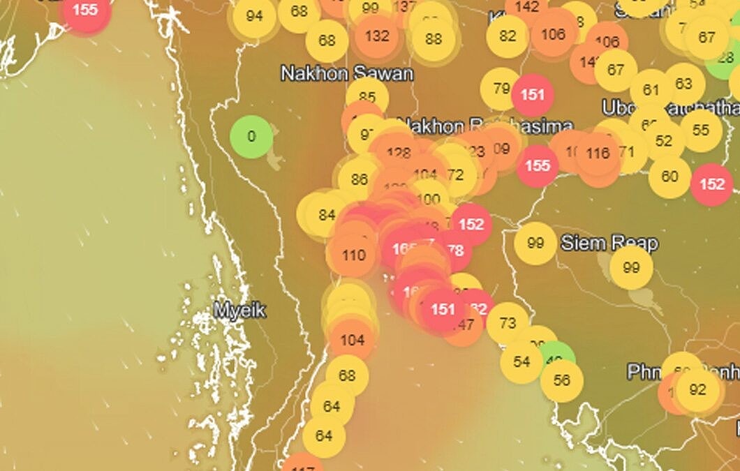 タイ国内全域でPM2.5 が「健康に影響を及ぼす」レベルに。バンコク汚染地域10選。