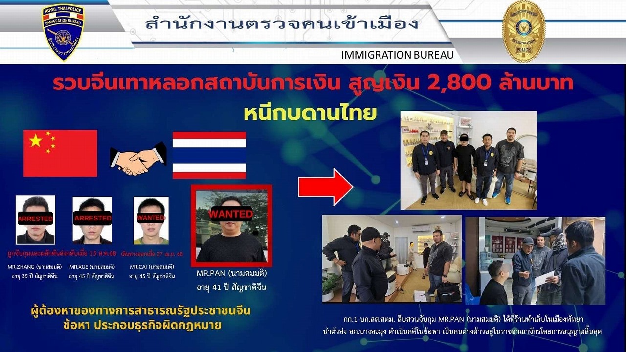 Panは2024年5月に中国から逃亡しタイに潜伏、逮捕状は2024年11月に発行されていた。