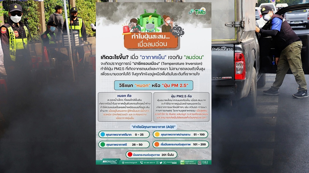 タイ気象局は、霧とPM2.5の見分け方について、次のように投稿した。
