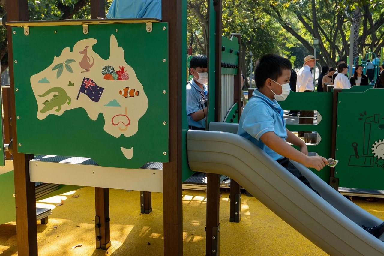 オーストラリア大使館タイ事務所は、バンコク都庁(BMA)との協力のもと、ルンピニー公園にオーストラリアをテーマにした新しいコミュニティ遊び場を開設しました。