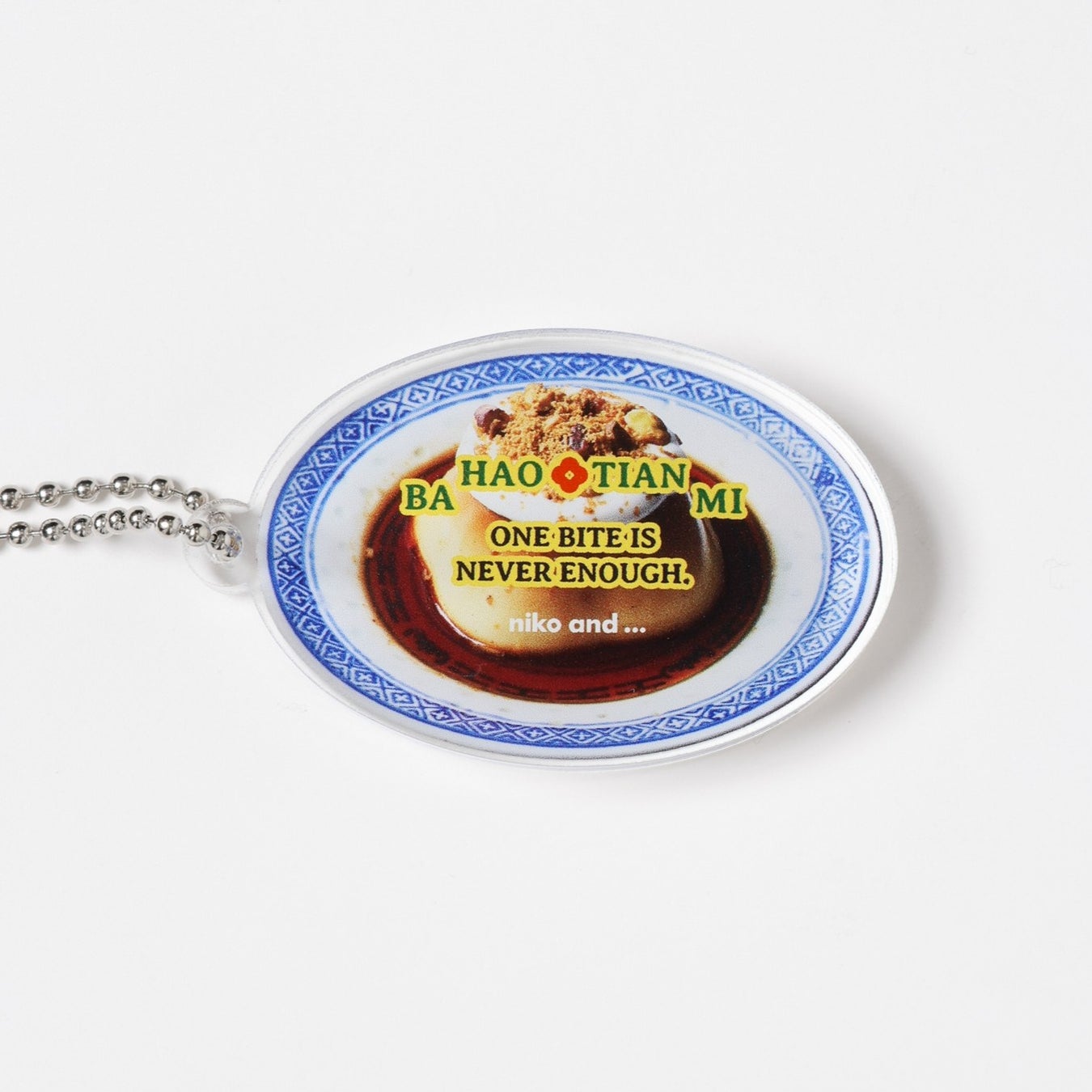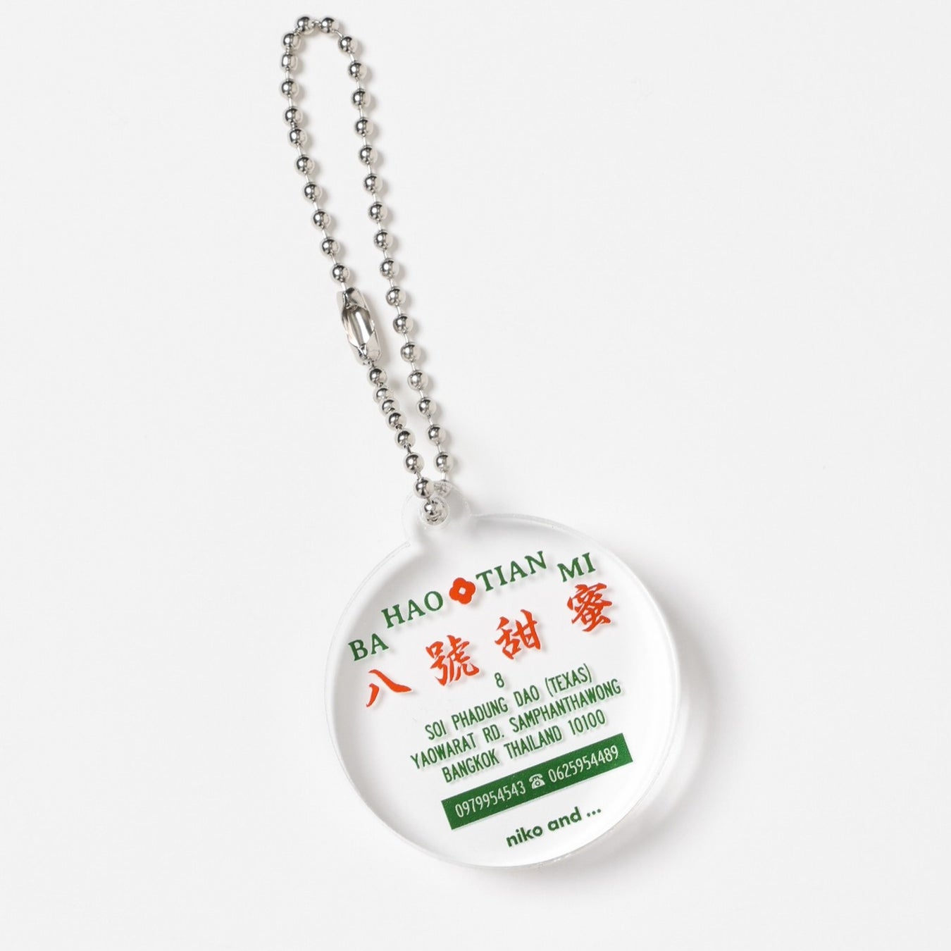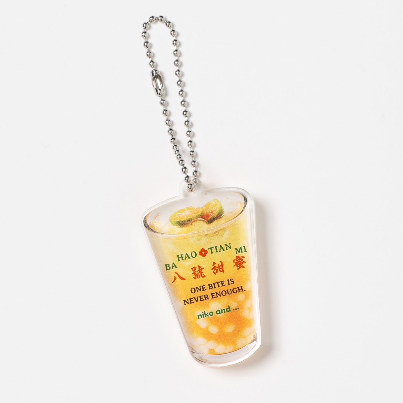 〈Ba Hao Tian Mi〉のロゴや、ピスタチオがのったカスタードプリン、爽やかなライムジュースをモチーフにしたデザインで、バッグや鍵のワンポイントにぴったり。お店の世界観を気軽に楽しめるアイテムです。