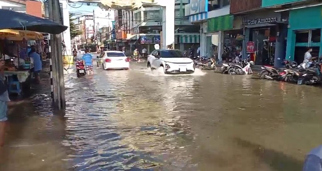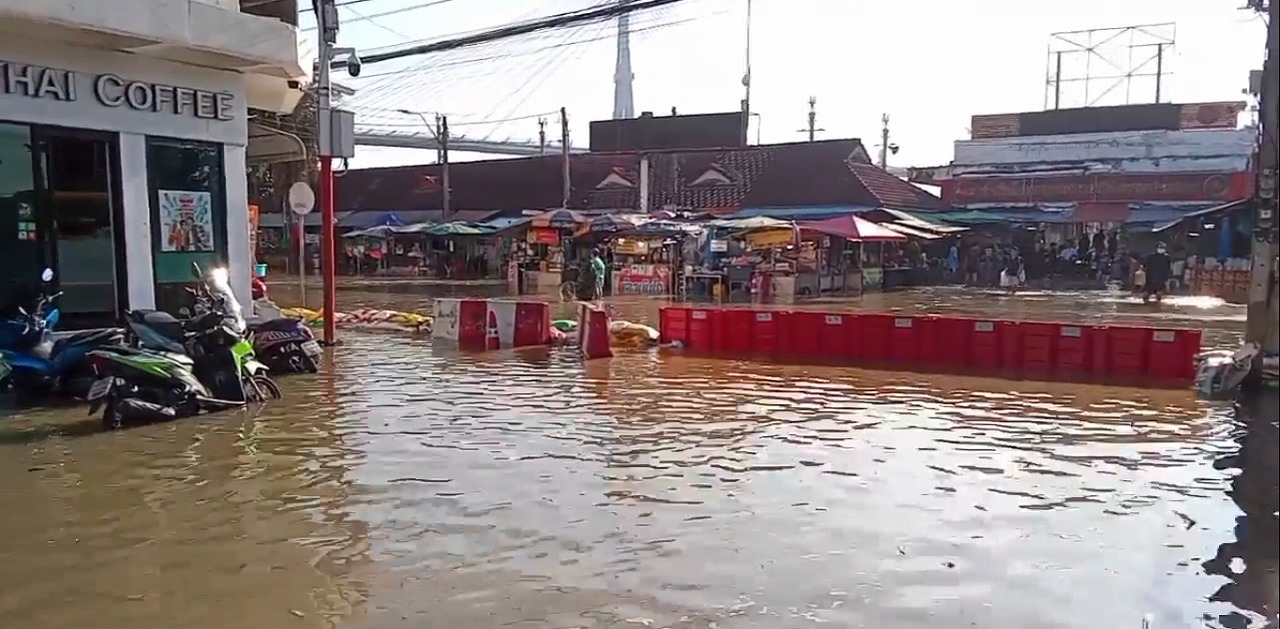 一方、プラ・サムット・チェディ地区では、スクサワット通り(ถนนสุขสวัสดิ์)、プラ・サムット・チェディ病院周辺、プラ・サムット・チェディの時計塔ロータリー、クロン・サッパサーミット通り(ถนนคลองสรรพสามิตร)、ウィアム・プラチャーミット寺院(วัดเอี่ยมประชามิตร)でも深い浸水が発生していた。