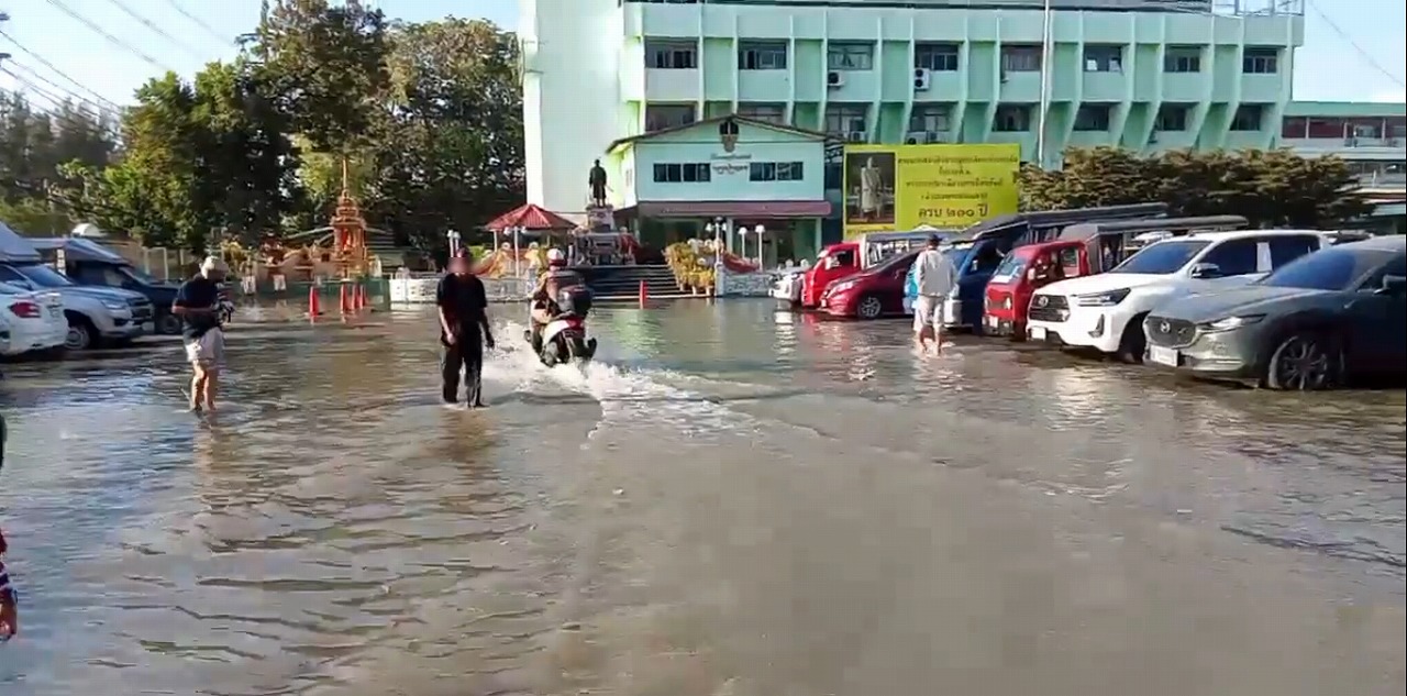 一方、プラ・サムット・チェディ地区では、スクサワット通り(ถนนสุขสวัสดิ์)、プラ・サムット・チェディ病院周辺、プラ・サムット・チェディの時計塔ロータリー、クロン・サッパサーミット通り(ถนนคลองสรรพสามิตร)、ウィアム・プラチャーミット寺院(วัดเอี่ยมประชามิตร)でも深い浸水が発生していた。