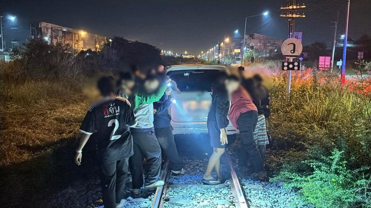 12月8日深夜0時36分、パタヤ郊外ノーンプルーで、泥酔した人物が車で線路に入っているとの通報が寄せられ、救助隊員らが急行した。
