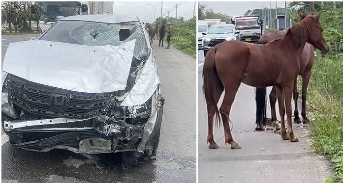 タイ中部、道路に馬の群れが乱入! 乗用車と衝突し馬2頭死亡・3頭負傷。一体どこからきた?