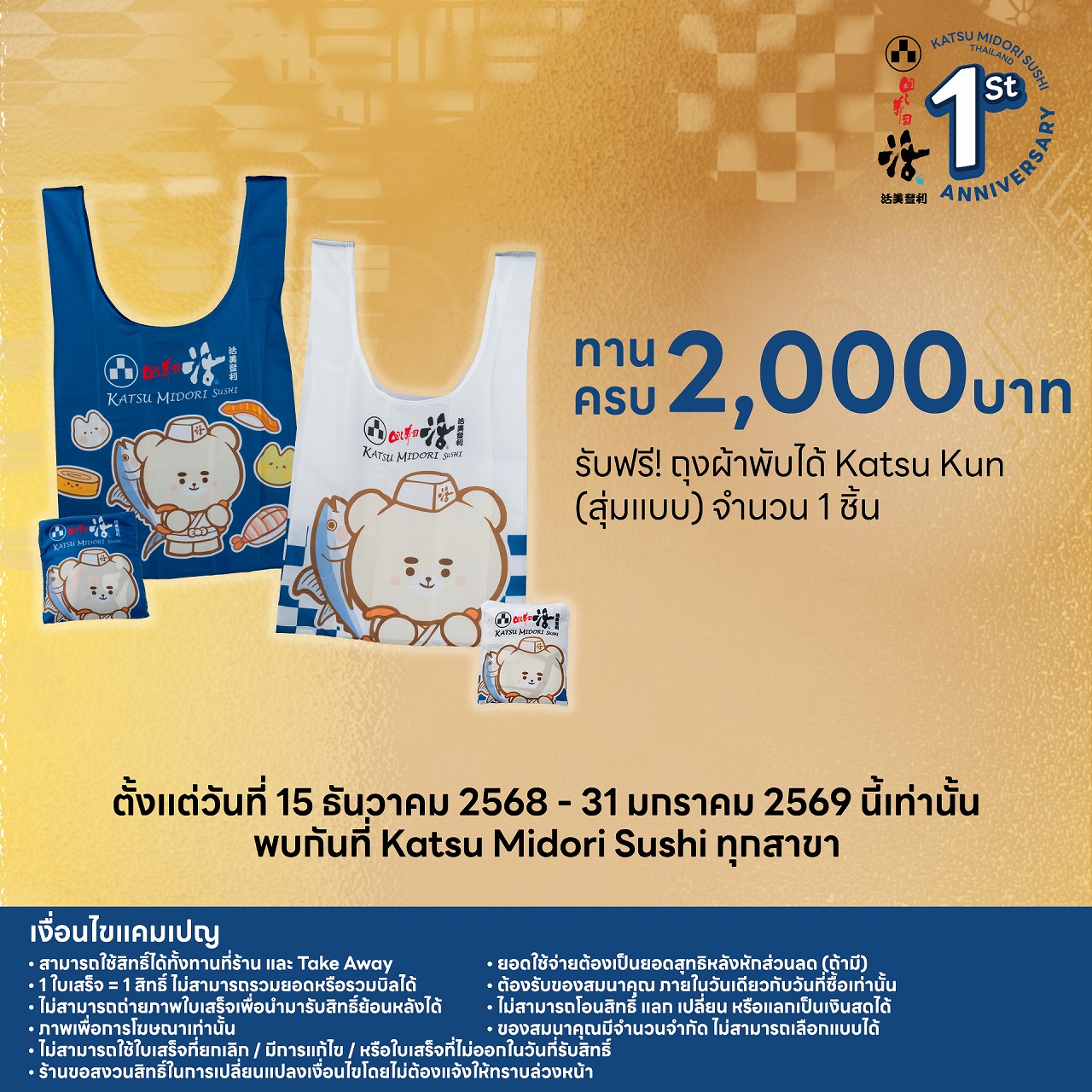 ・合計2,000バーツ以上:折りたたみ可能なKatsu Kung エコバッグ(ランダム)