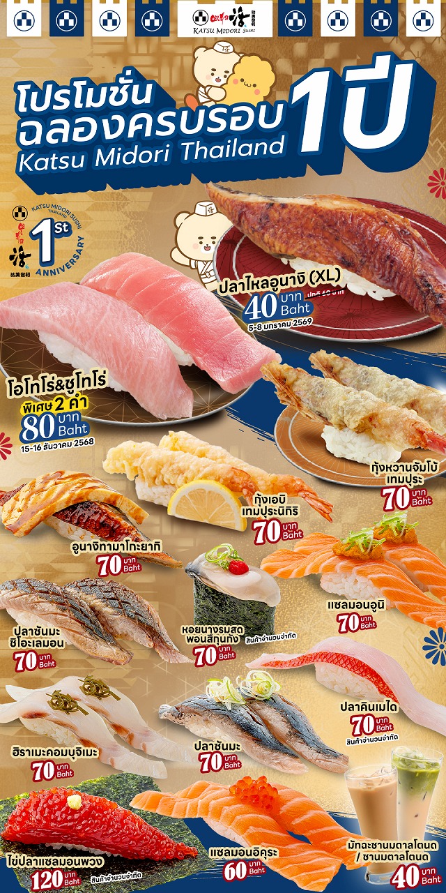 12月10日にプレオープンを迎えた「Katsu Midori Sushi」フューチャーパーク店も含め、タイの各支店で1周年記念イベントを開催しております。