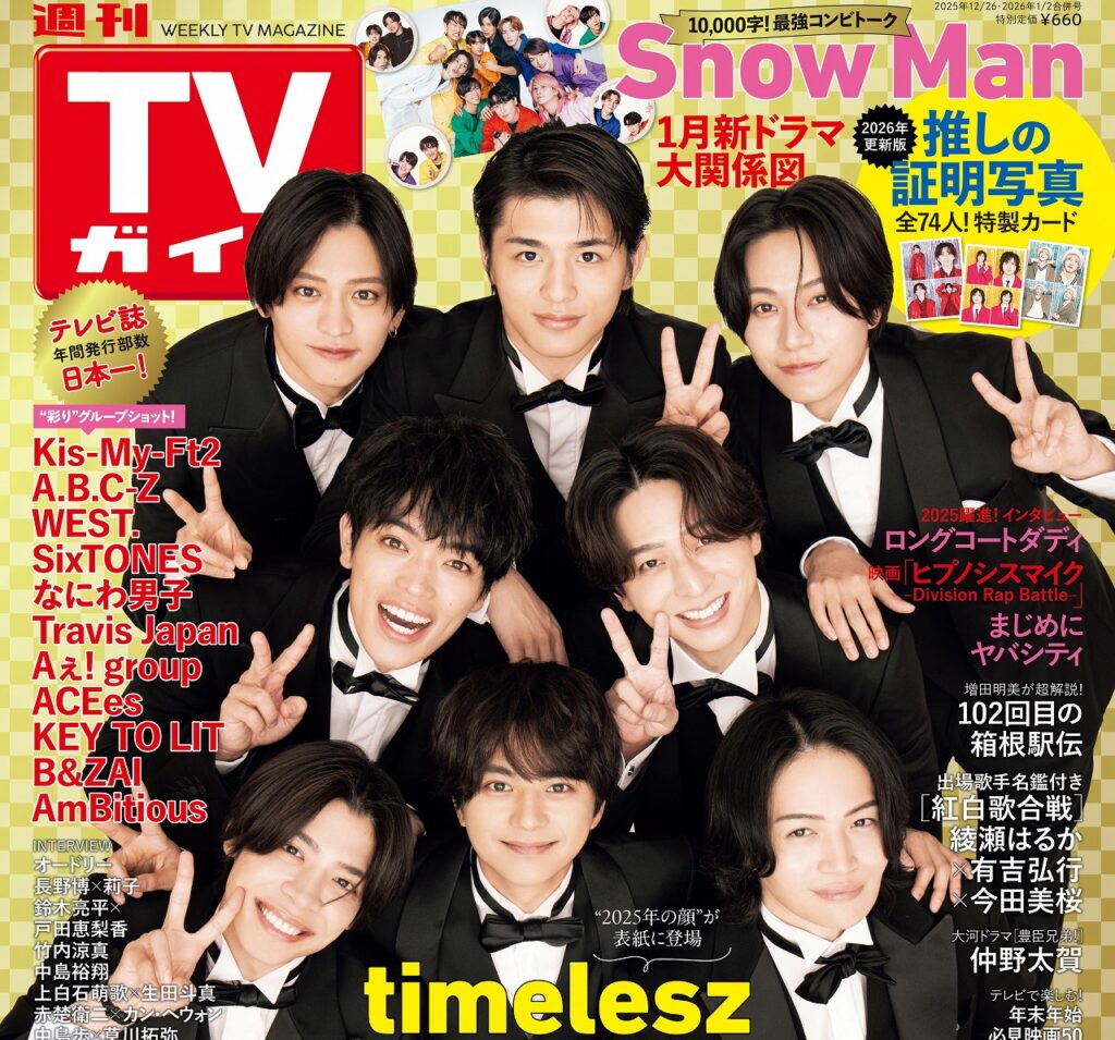 巻末はSnow Man大特集!「週刊TVガイドお正月超特大号」12月15日発売!表紙:timelesz。