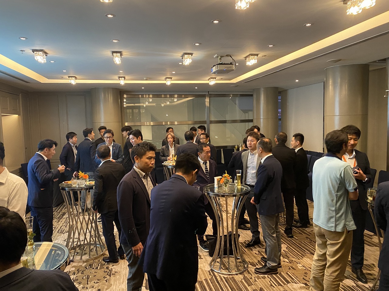続く第二部の懇親会には、住吉ジェラニレショーン選手と髙橋利樹選手も参加し、会場では企業同士の活発な情報交換や名刺交換が随所で行われた。
