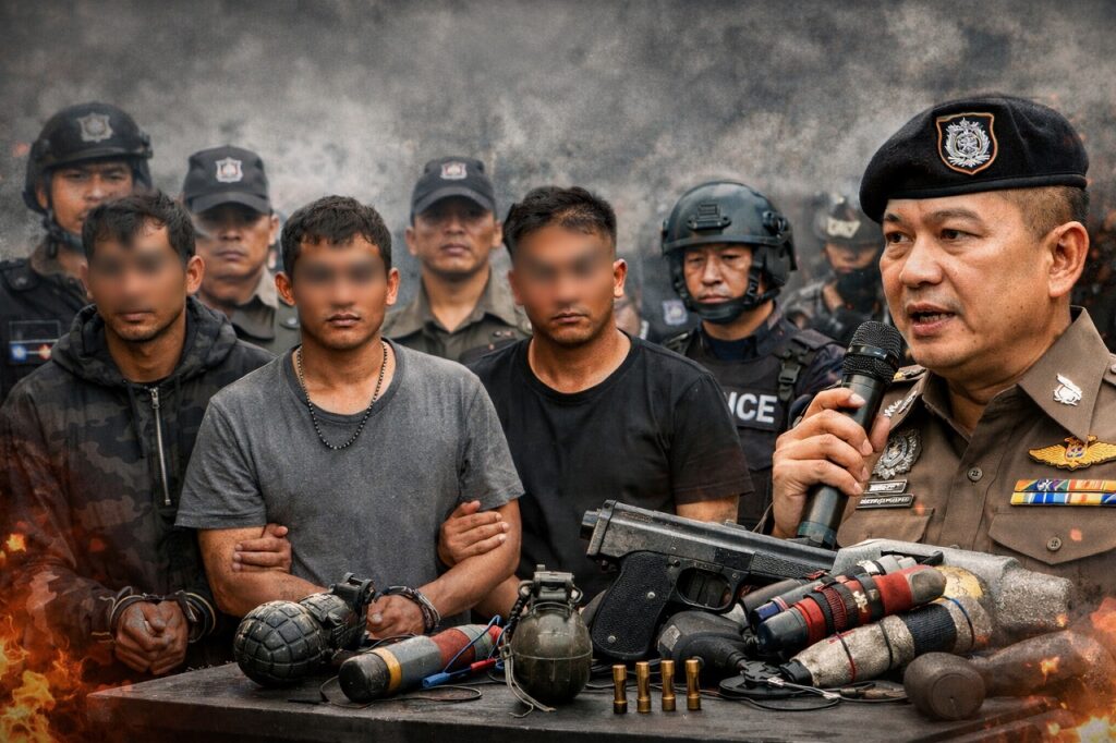 カンボジア人が武器や爆発物を所持しタイ人に挑発行為。3名逮捕7名逃走中~チョンブリー県。