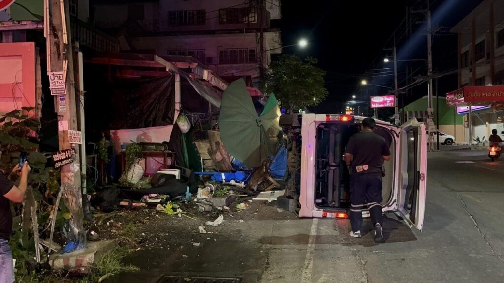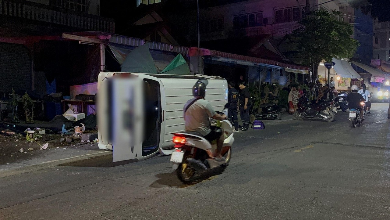 12月18日午後10時ごろ、パタヤ市ノーンプルー地区で、中国国籍の男性が運転する白色のトヨタ製バンが住宅の塀に衝突して横転するという事故が発生した。