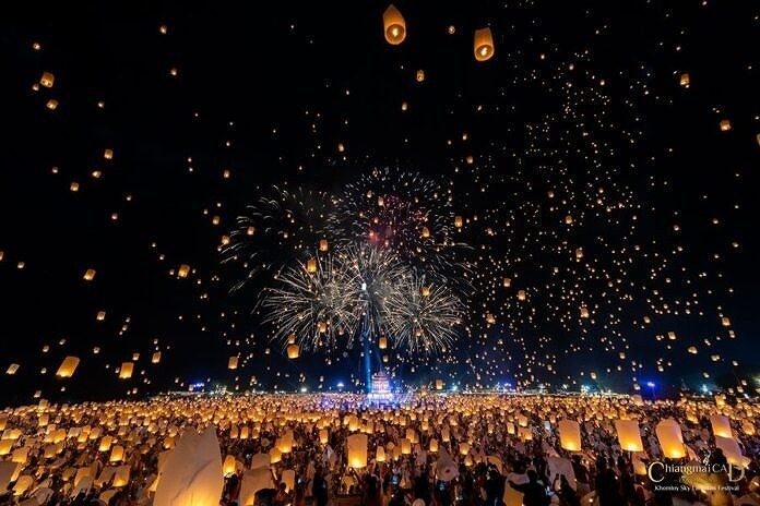 「Light of Faith 730 Years Glory of Lanna」をテーマにしたこのカウントダウンイベントでは、ランナー文化を祝うイベントが開催され、色とりどりの花火やランタンリリース、音楽イベントなどが盛り上がります。