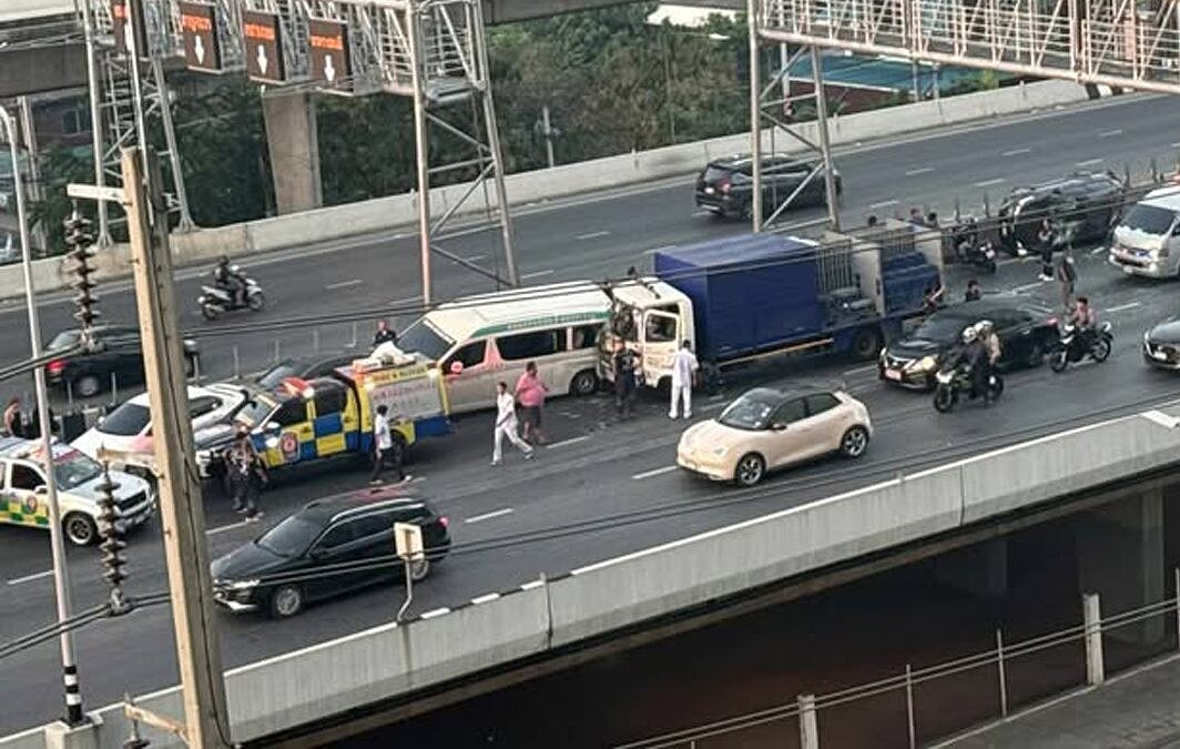 12月20日午前6時58分、バンコクのラチャプルック通り(都心方面)、BTSウタカート駅下付近において、乗用車5台が衝突する事故が発生した。