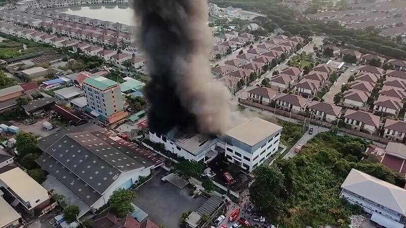 バンコク・バーンクンティアンで大型倉庫火災、黒煙噴出。崩落の恐れで立ち入り不可。