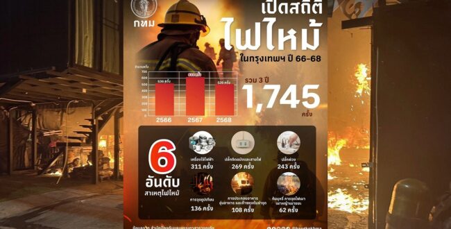 12月21日、バンコク都の報道官は、過去3年間における都内の火災原因に関する統計を公表した。 バンコク都防災・減災局によると、直近3年間(2023~2025年)の火災発生件数は計1,745件で、そのうち最も多い原因は「電 … 続きを読む 3年間で火災件数1,745件! バンコク都、火災統計を発表。原因の大半が電気機器関連。