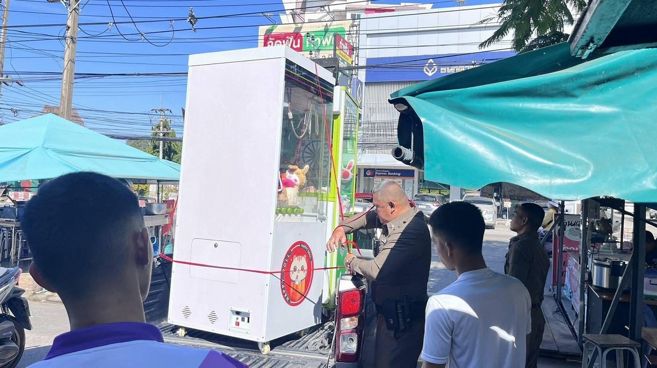 パタヤのノーンプルー警察署は、賭博行為の根絶に向けて取り締まりを強化しており、最近ではカオタロ通り周辺に設置されたコイン式クレーンゲーム機を対象に捜索を実施しました。