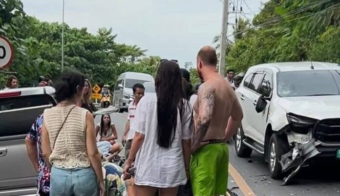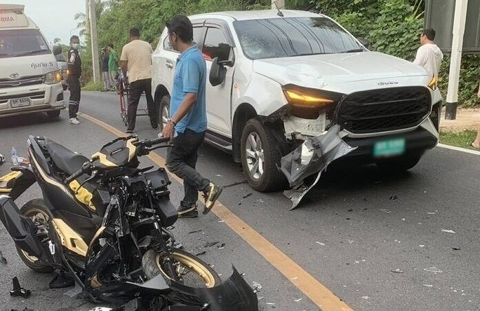 プーケットでバイクとピックアップの衝突事故。バイクの外国人女性死亡。バイクが対向車線はみ出し。