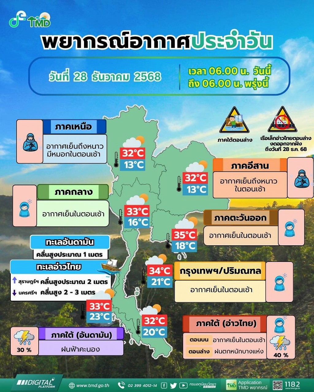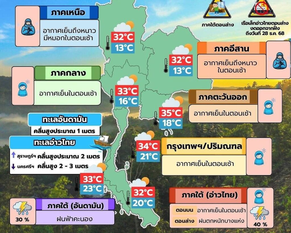 12月28日、タイ気象局は今後24時間の天気予報を発表した。