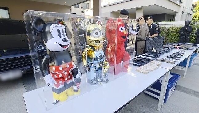 現場からは、高級車2台、バイク1台、現金100万バーツ、短銃11丁、長銃5丁、弾薬、さらに高級人形3体など、多数の証拠品が押収された。