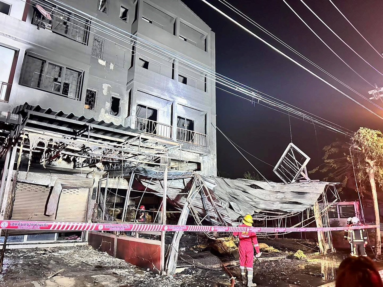 バンコク・サイマイ地区の商業ビルで深夜の火災。男女3人が2階から飛び降り負傷。