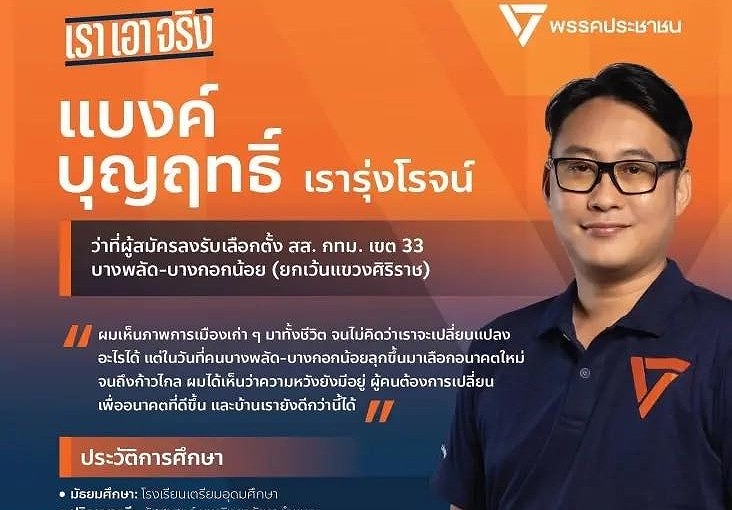 タイの国民党のバンコク選挙区33区候補だったブンヤリット・ラオルンロート氏(บุญยฤทธิ์ ราวรุ่งโรจน์)が、麻薬ネットワークに関連した資金洗浄(マネーロンダリング)容疑で逮捕され、選挙直前に候補者を差し替える事態となった。