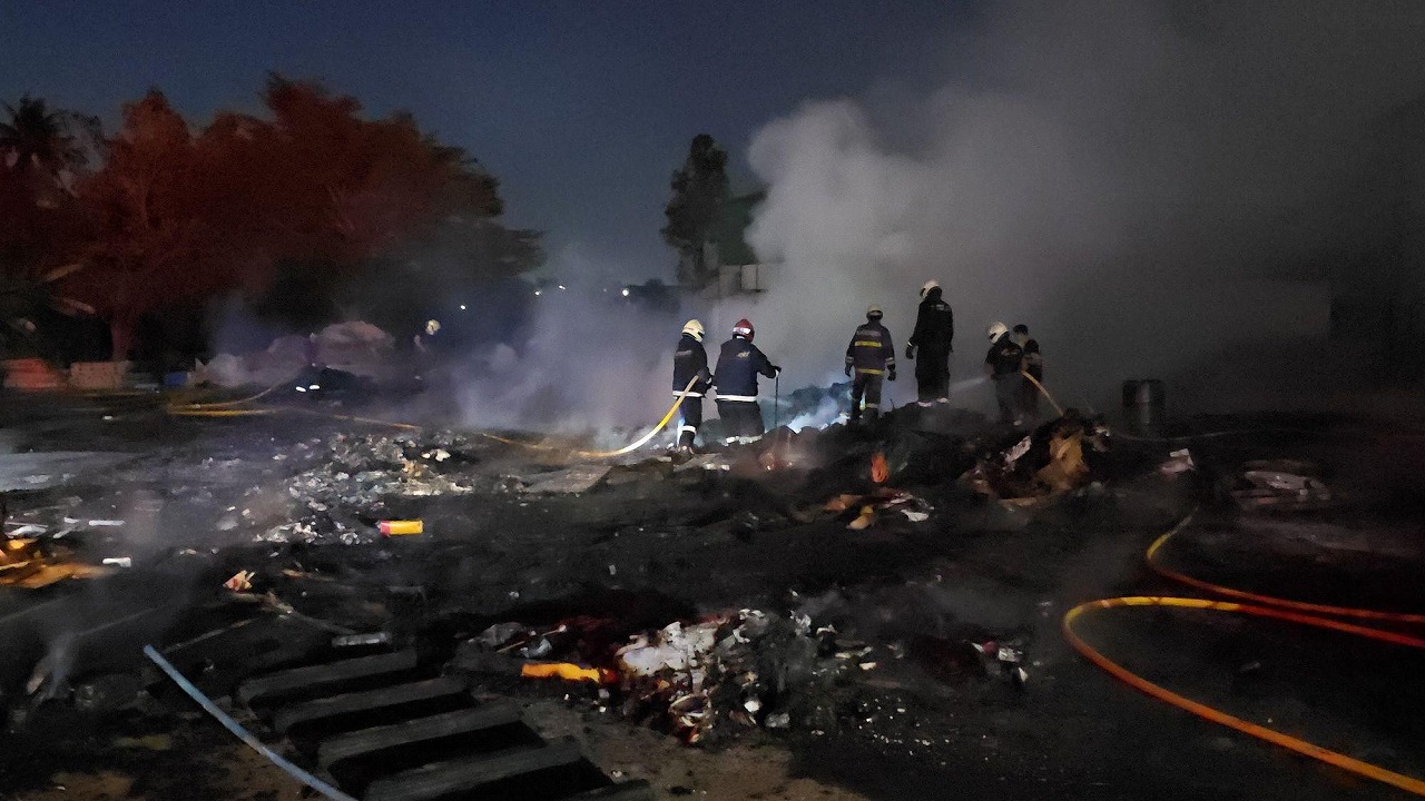 12月30日早朝、タイ・シラチャーにあるリサイクル施設で大規模な火災が発生し、約1ライ(約0.16ヘクタール)の木製パレットと古紙が全焼した。