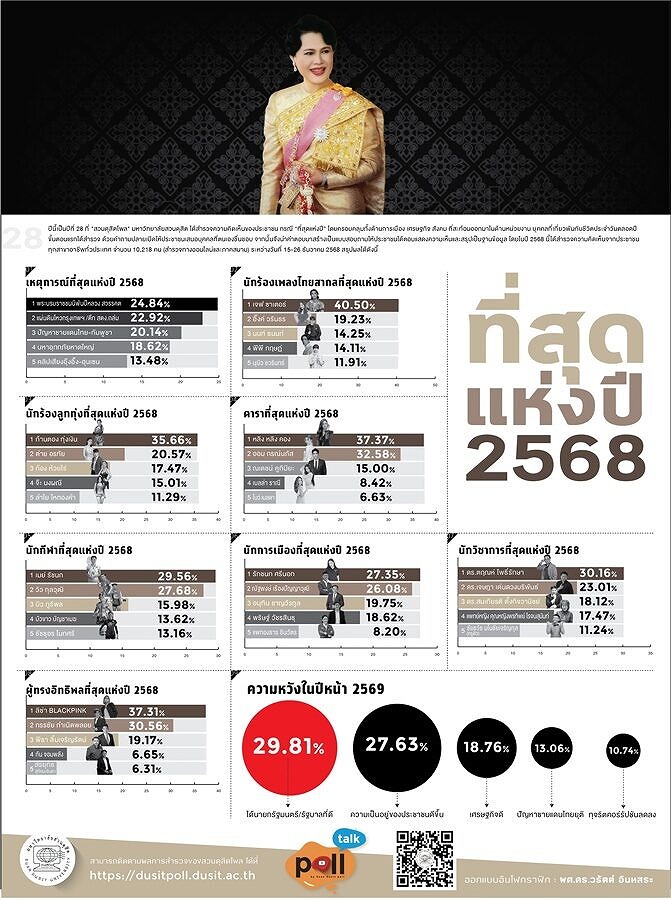 2026年1月1日、スアンドウシット大学の世論調査機関「スアンドウシット・ポール」は、「2025年を象徴する出来事・人物」に関する調査結果を発表しました。