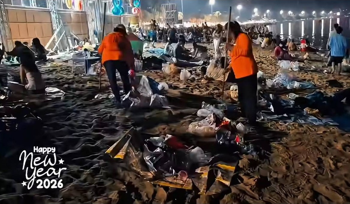 パタヤ、年越しイベントの華かなの裏側で。2026年元日、海岸を支えた「名もなき清掃員たち」