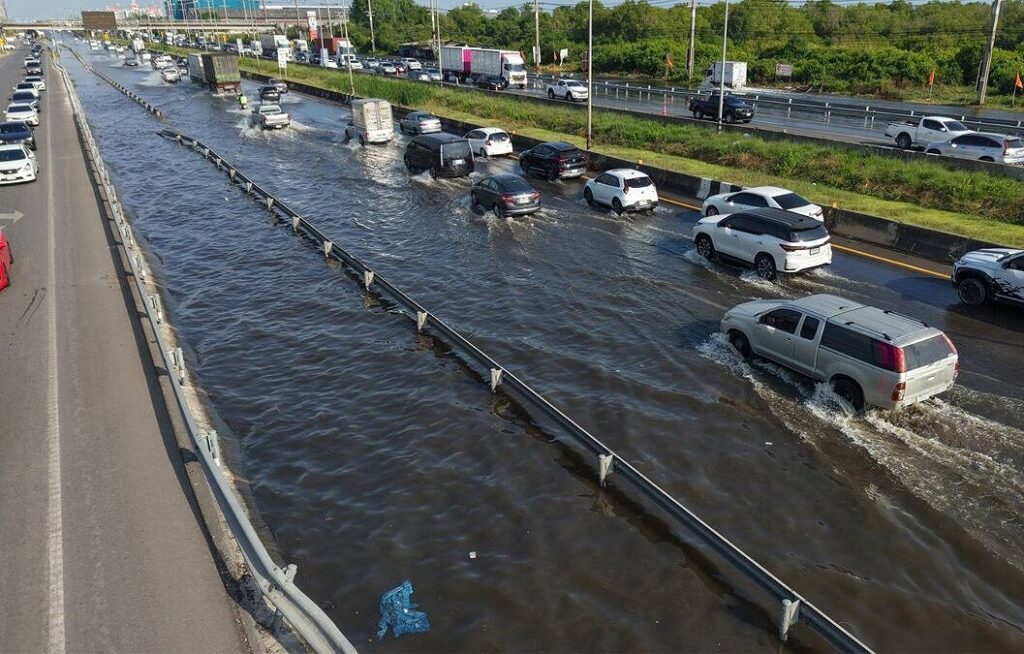 対象区間は、バンコク方面行きの37~40km地点で、複数の場所で通行に支障が出ていました。