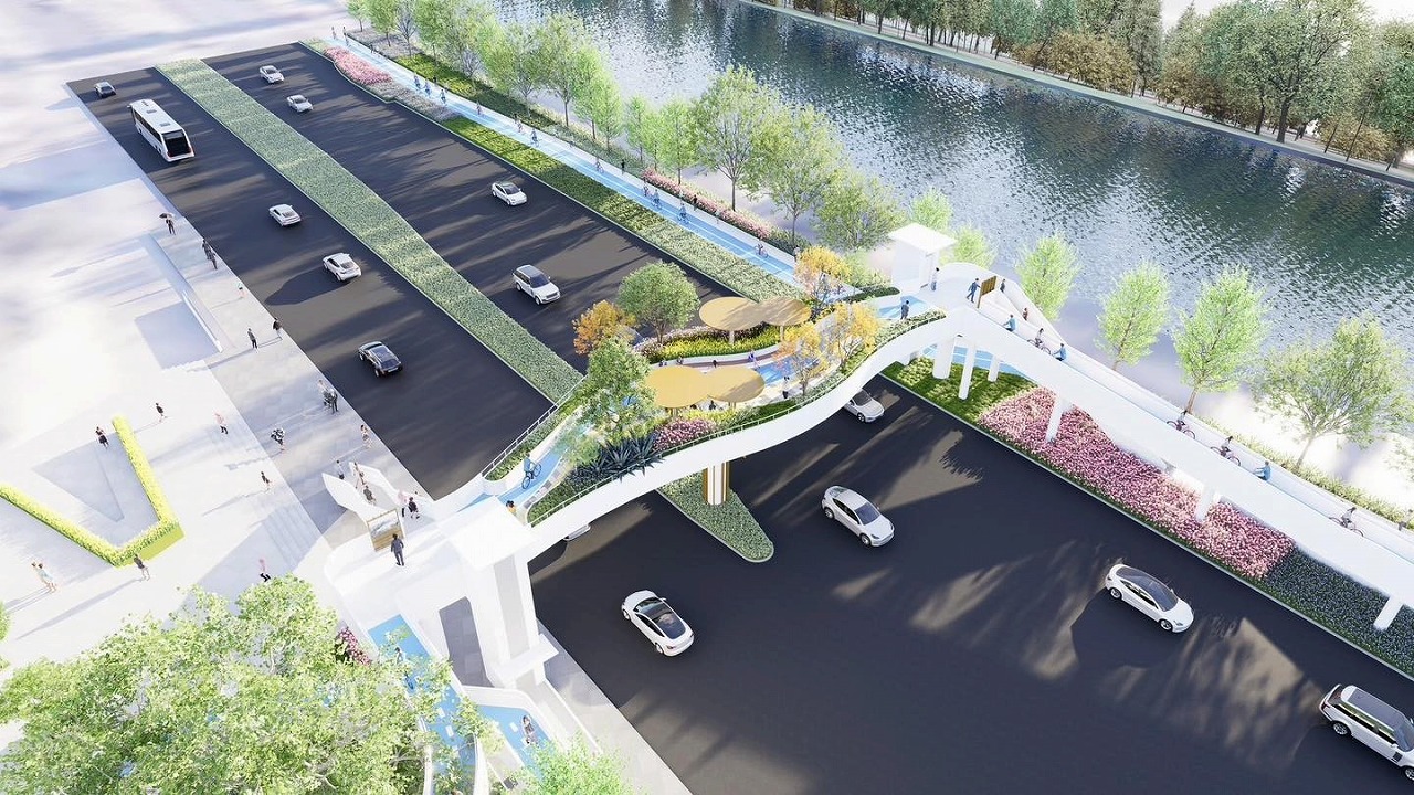 この「自転車・歩行者用道路横断橋」は、日常的に運動を行う住民や自転車利用者、歩道を利用する通行人の利便性向上と事故防止を目的として計画されたものだ。