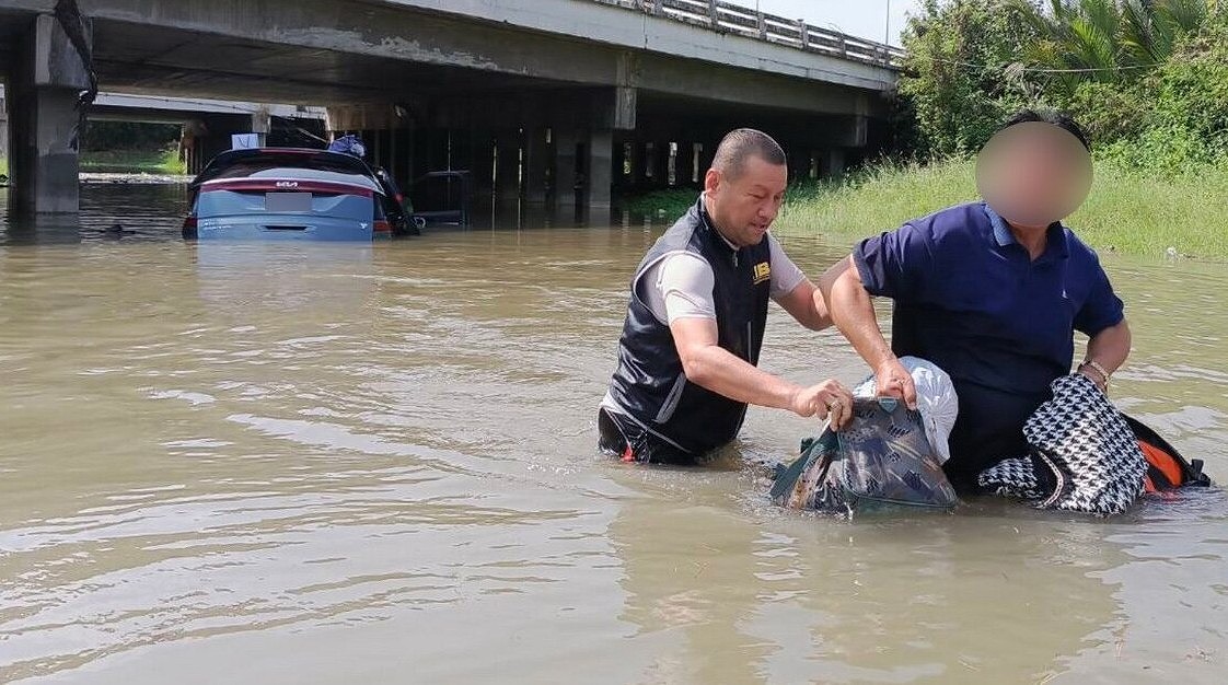 1月3日午前11時40分ごろ、バンコクから来た観光客5人が乗った車が、クロンコーン橋下のUターン地点で冠水に気づかず進入し、車体がほぼ水没するという事故が発生した。