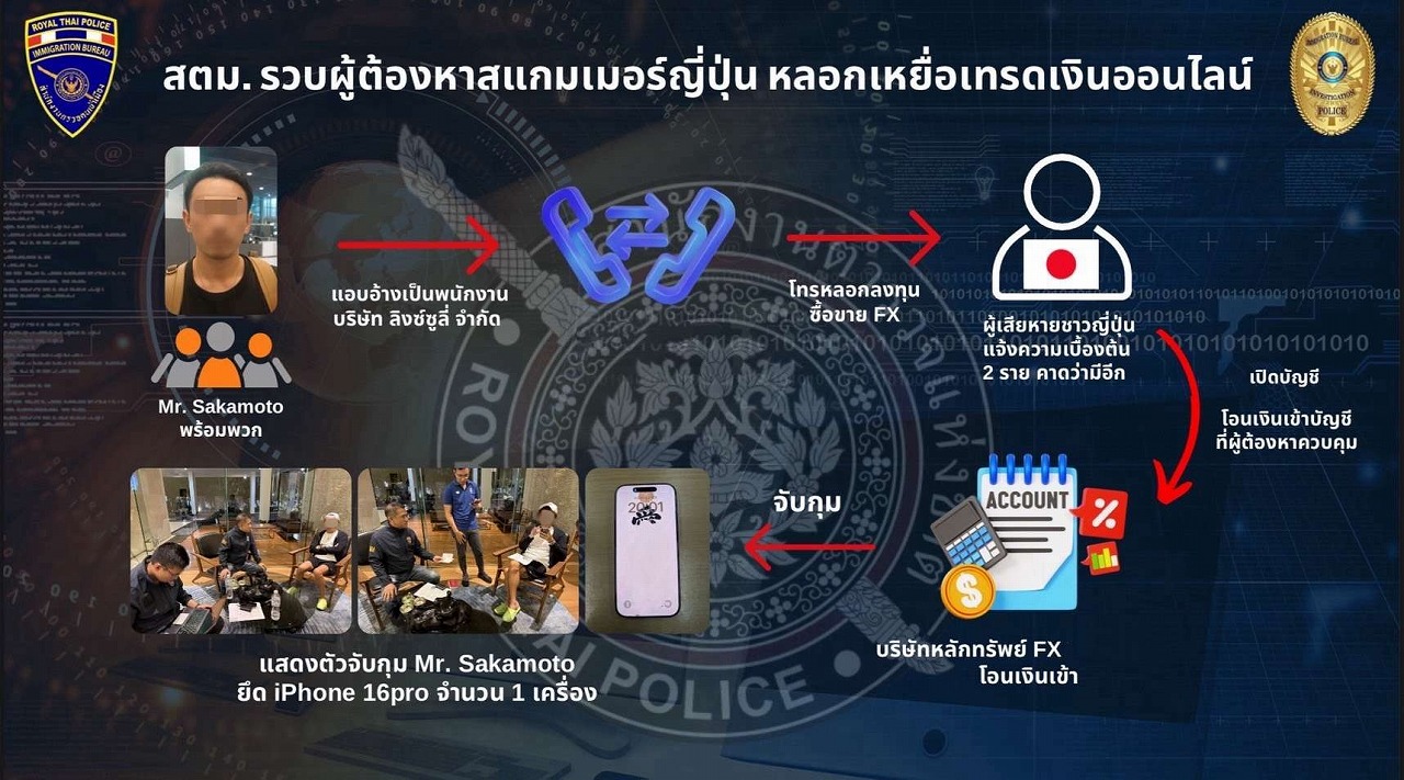 1月8日、タイ入国管理警察は、日本人と中国人による詐欺犯罪グループの容疑者を逮捕したと発表した。