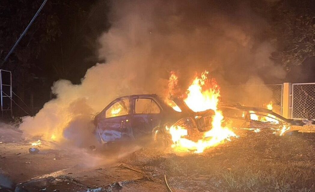 ブンカーン県セカー郡で1月10日午前3時頃、小売店経営者の男性アー(30歳)が運転する白いベンツが制御を失い、道路沿いの高圧電柱5本に衝突、車両が全焼する事故が発生した。