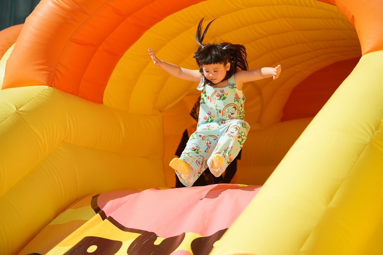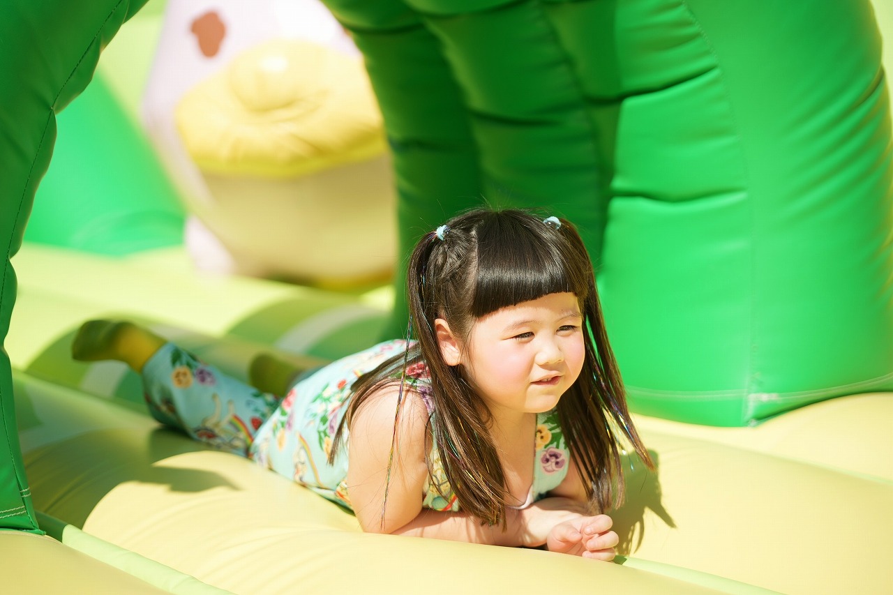 会場では、走ったり登ったりジャンプしたりできるエア遊具や、B.Duckマスコット5キャラクターとの記念撮影スポットが用意され、子どもたちは遊びながら学べる体験を楽しんだ。