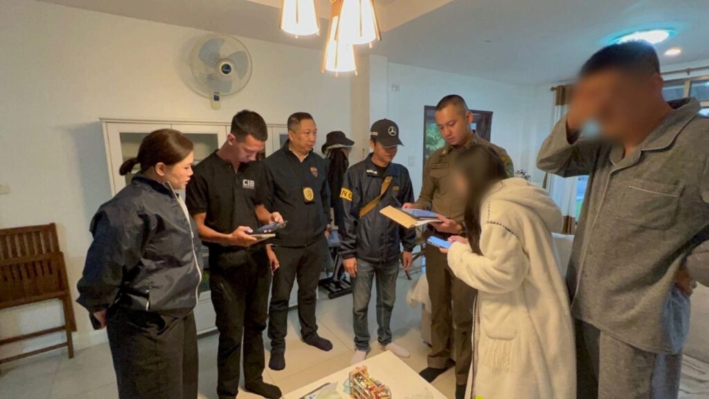 経済犯罪取締課とチェンマイ入国管理局の合同捜査により、ヤン容疑者(41)、ワン容疑者(46)、リー容疑者(46)を、バンコク・ホイクワーン区のコンドミニアムとチェンマイ県ハンドン郡の住宅で身柄を確保した。