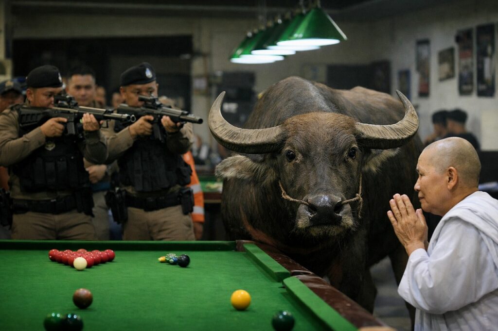 1月11日、チェンマイ県警察司令部に、畜産農家から水牛が逃げ出し、チェンマイ市チャンカラン通りを走り回った後、市内のビリヤード場に逃げ込んだとの通報があった。