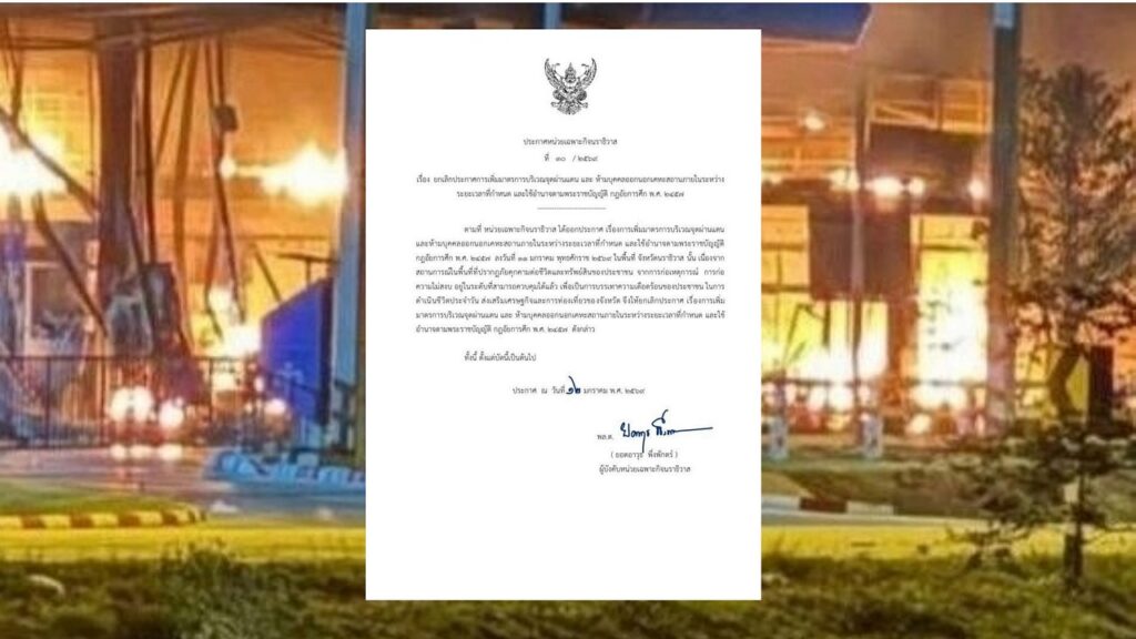 タイ南部ナラティワート県、夜間外出禁止令を解除。治安状況は管理可能と判断。