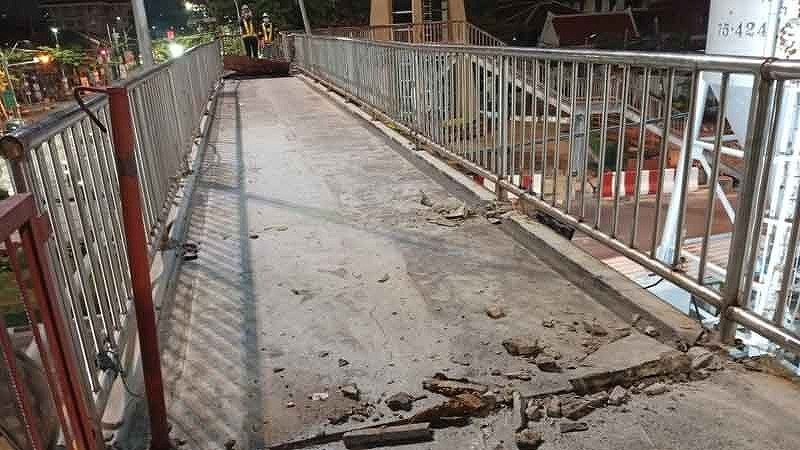 当該歩道橋はバンコク都の所有物で、事故後、元請会社は直ちに技術者と土木局を呼び、損傷状況を確認。構造上の問題はなく、使用には支障がないことが判明した。
