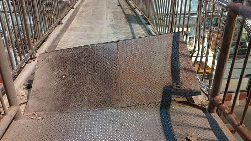 調査の結果、歩道橋の床面や柵が損傷し、付近の街灯もわずかに曲がっていたという。